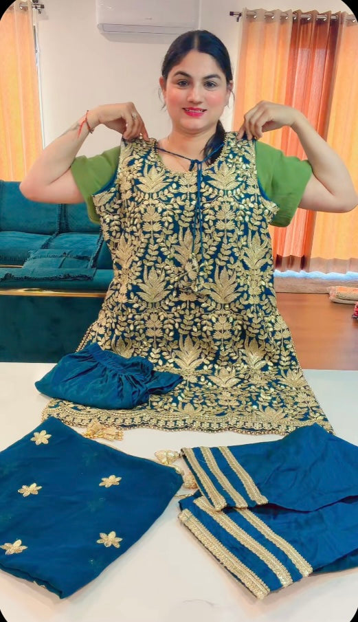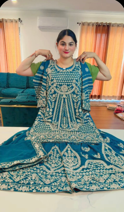 Party Wear Heavy garara suit on Georgette ( Colour - Teal Blue ) Code: RS106