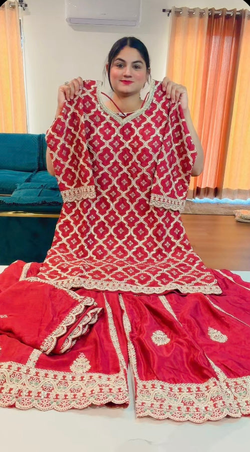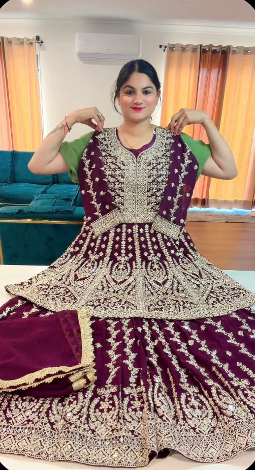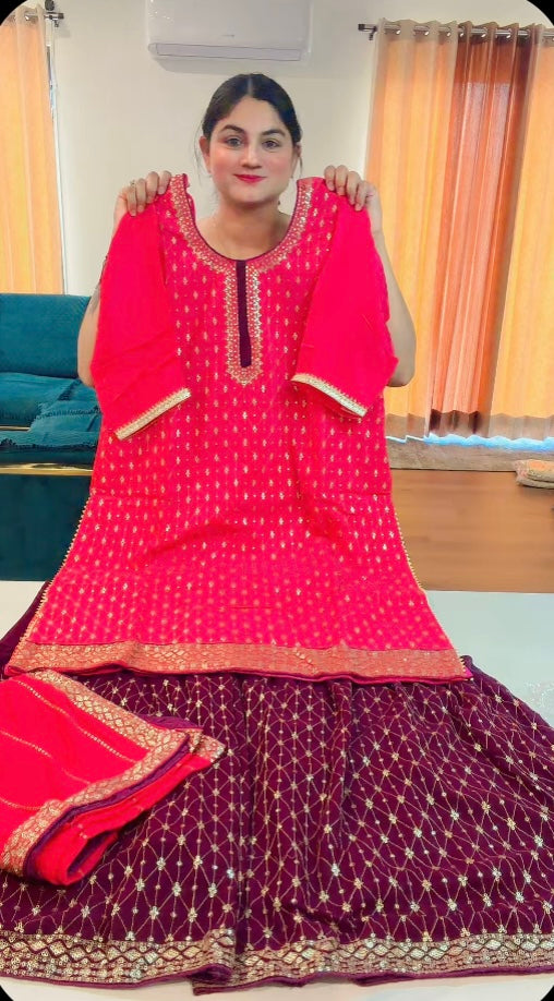 Party wear Sharara suit on carpe and Georgette ( Colour : Gajri+Wine) code RS106