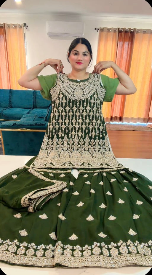 Party Wear Heavy Garara suit on Georgette ( Colour: Bottle Green )