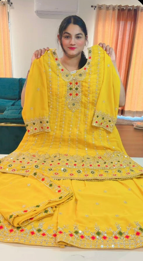 Party wear Sharara suit on Georgette ( Colour - Yellow )Code: RS105