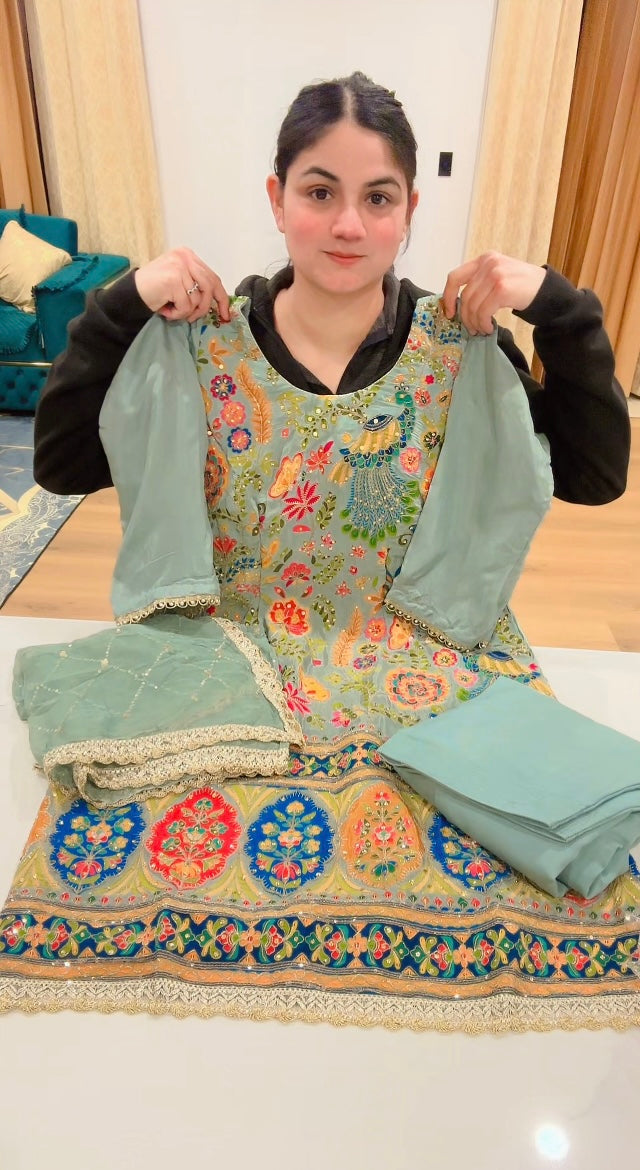 Embroidered Pastel Salwar suit Colour - Water Blue ( Code: 630 )