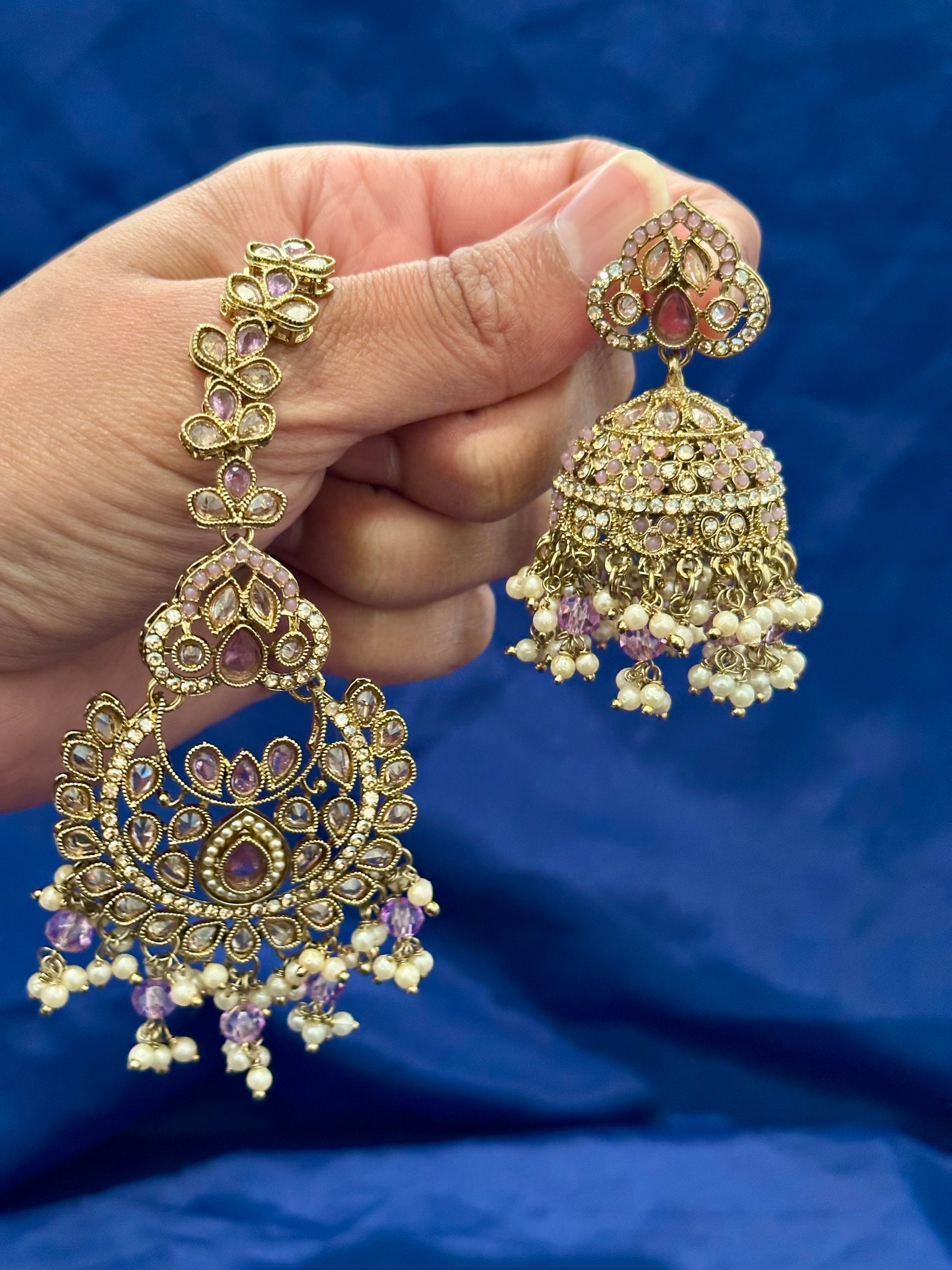 Earrings with tikka in polki, Colour: Purple, Code: 094