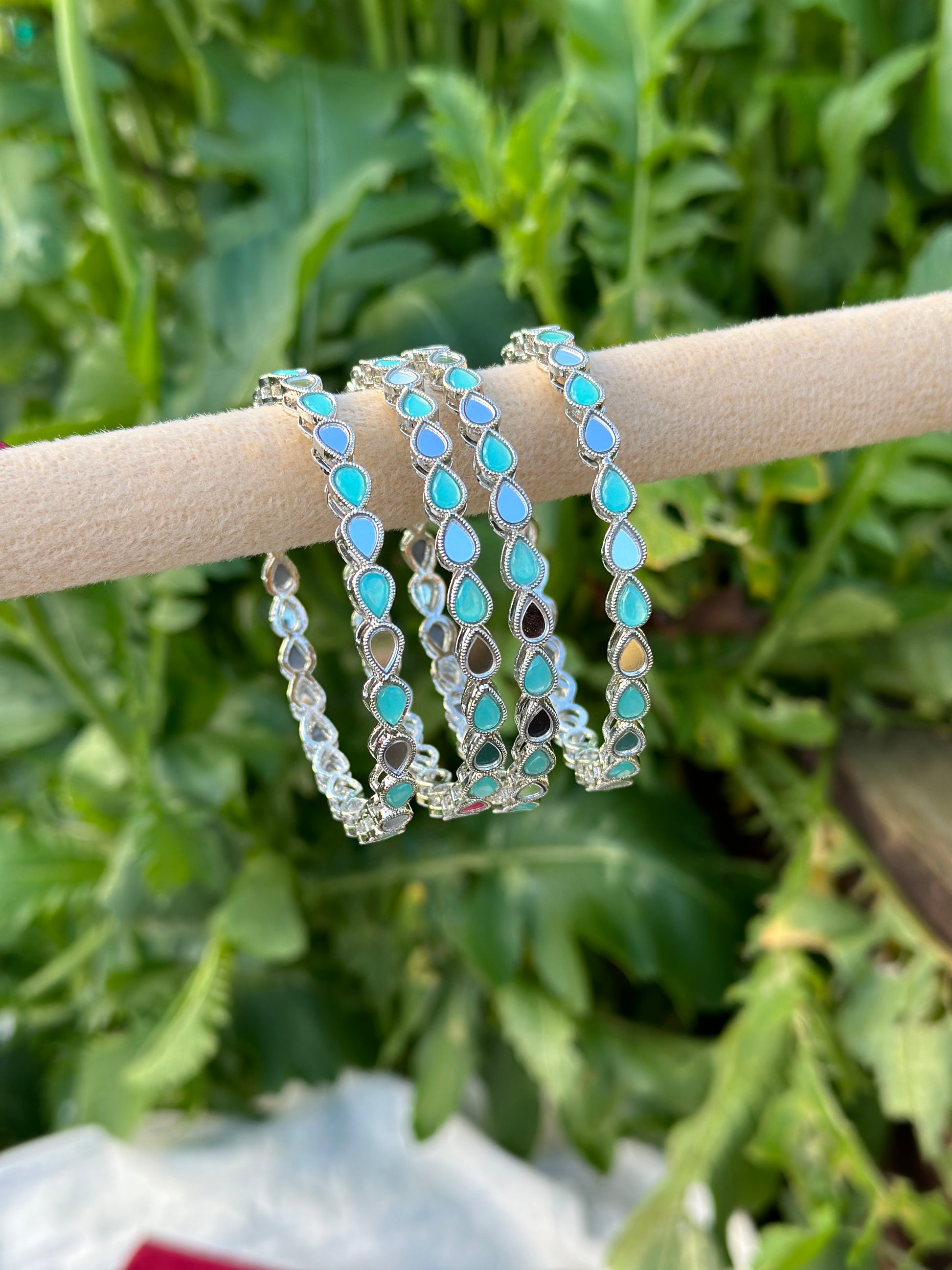 Pista green mirror Kangan / bangles in silver ( set of 4 )
