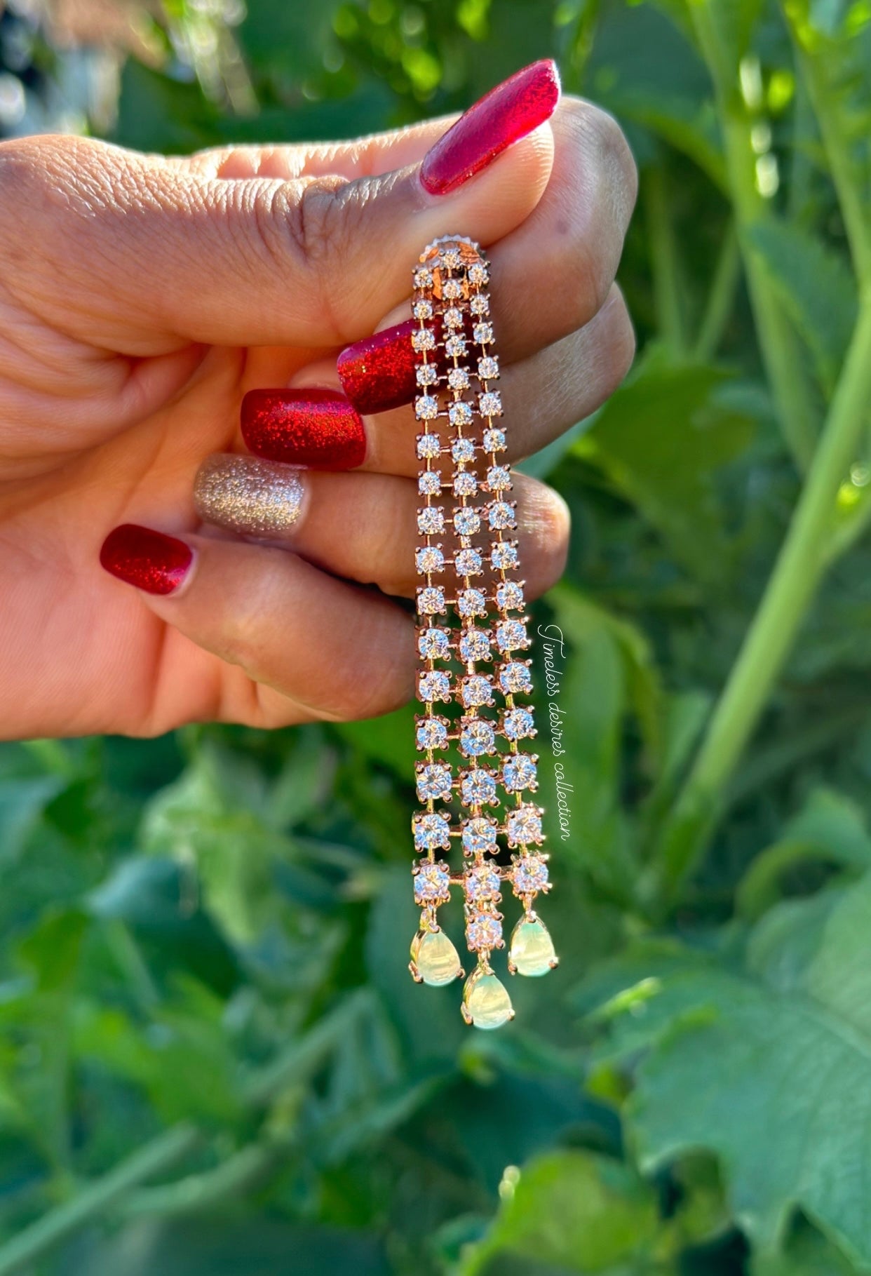 Mint geeen hanging American diamond earrings