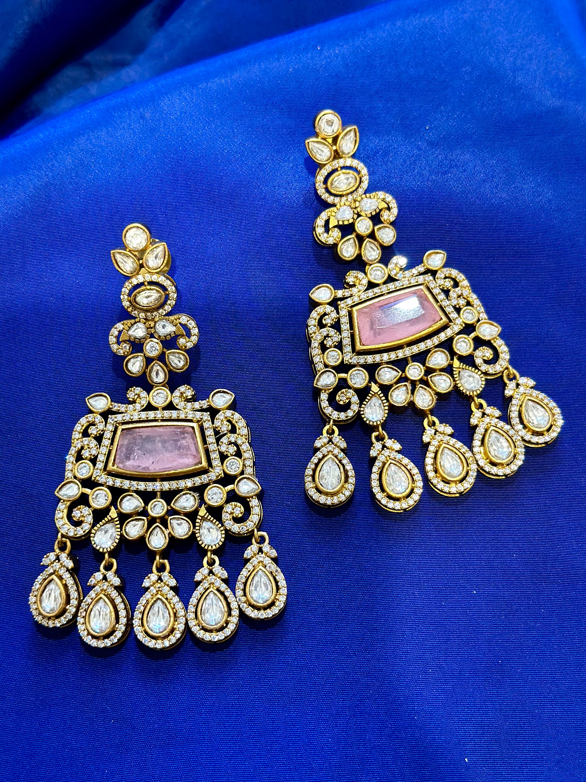 Moissanite earrings ( Premium Range ) Colour: Baby Pink , (Code: X4)