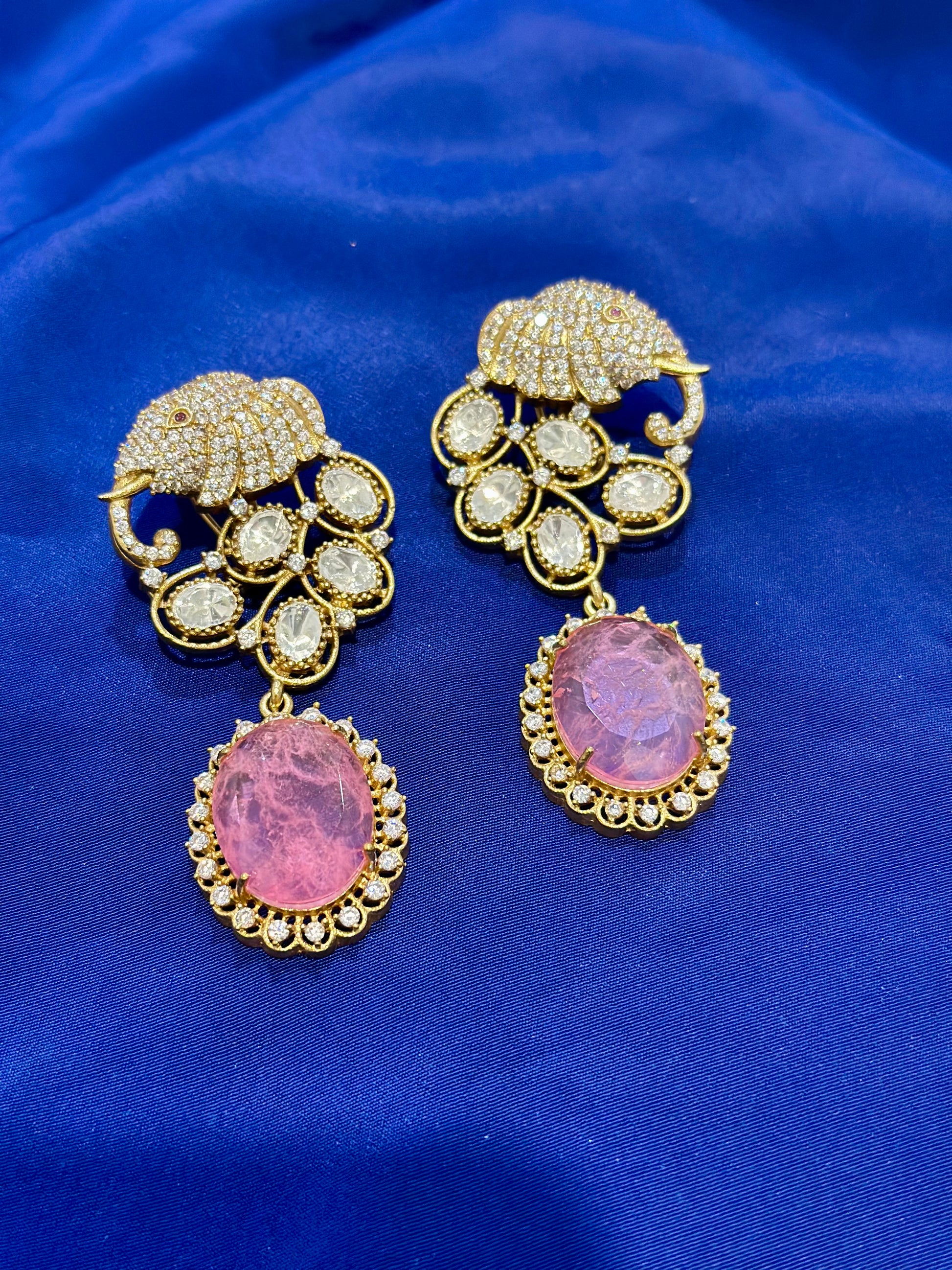 Mossonite+Doublet earrings ( Premium Range ) Colour: Pink, (Code: X7)