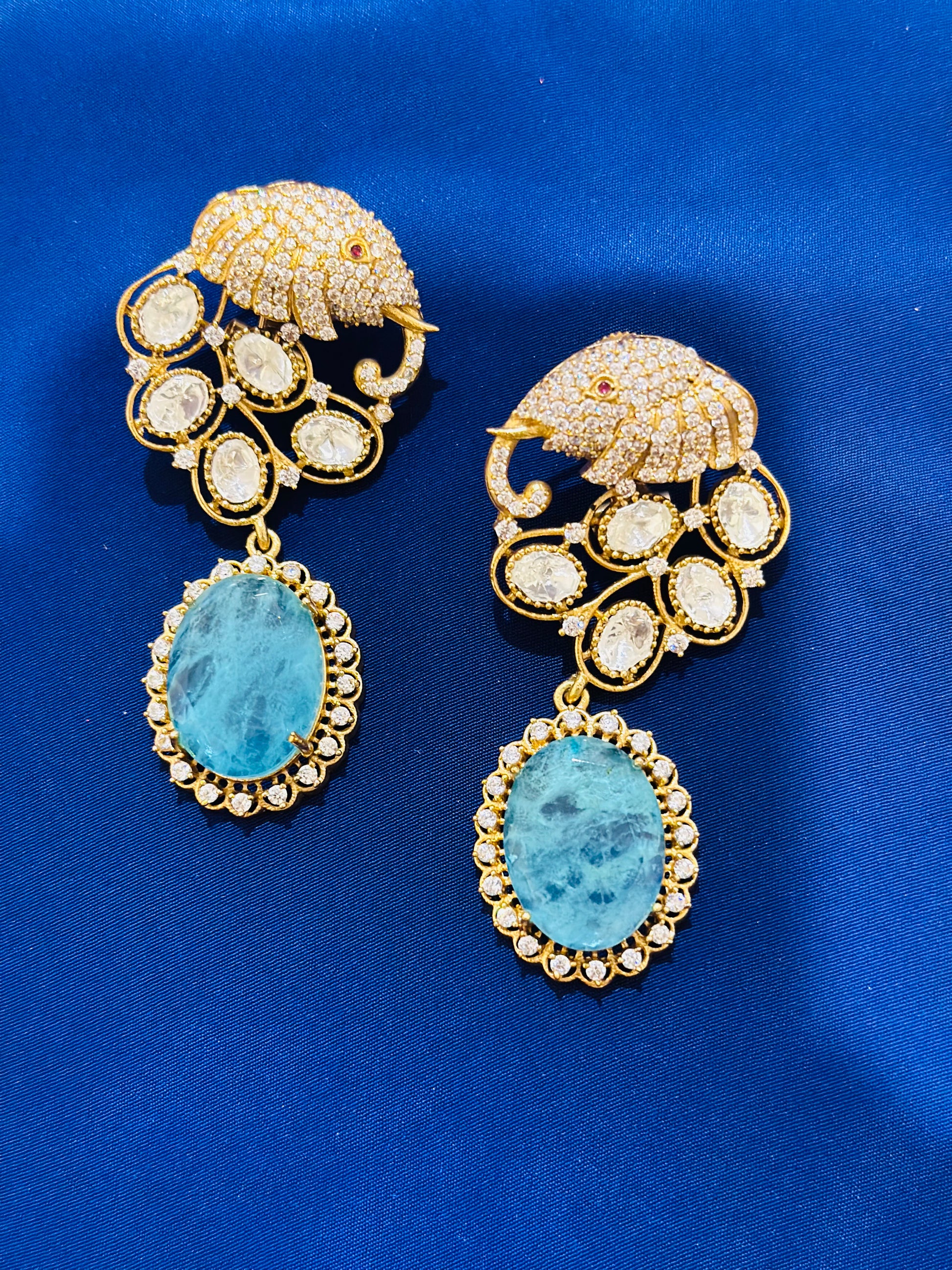 Mossonite+Doublet earrings ( Premium Range ) Colour: Firoza, (Code: X7)