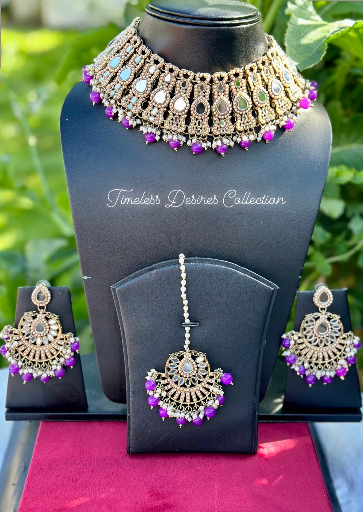 Purple pearl loaded choker / necklace set in mirror