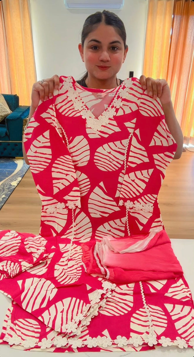 Readymade 3 pieces plazo suit with double shade dupatta, Colour: pink, Code: 171