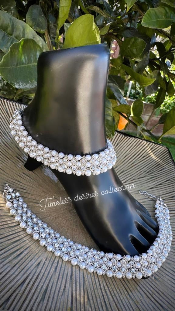 Silver Polki Double Stone Anklets/Jhanjra (TD-2)